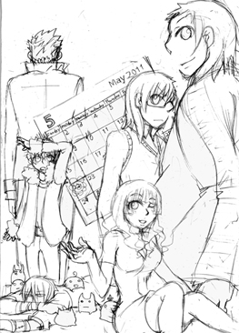 花見日和 2011年04月07日 0 天気もよくて、桜も満開。 花見に行きたい今日この頃。 まぁ、それはともかく。 先日の小倉イベント用ペーパーに載せていた 四コマをUPしています。 ほとんど配れなかったし。 新刊は間に合ってないし。 …で。その間に合わなかった 新刊の表紙下描きができたので こっちに載せてみたり。 前にも書いたとおり、六曜擬人化です。 進行状況は 本文の下描きが六割ほど &残り本文のネーム +入れようか削ろうか微妙なネタネーム1本 …かな。 もう一枚別にペン入れまでした表紙があったんですが なんだか今ひとつで描き直し。 もっと悩むかと思ったけど、案外さくっと決まってよかった。 いちおフルカラー予定。 がんばろう。